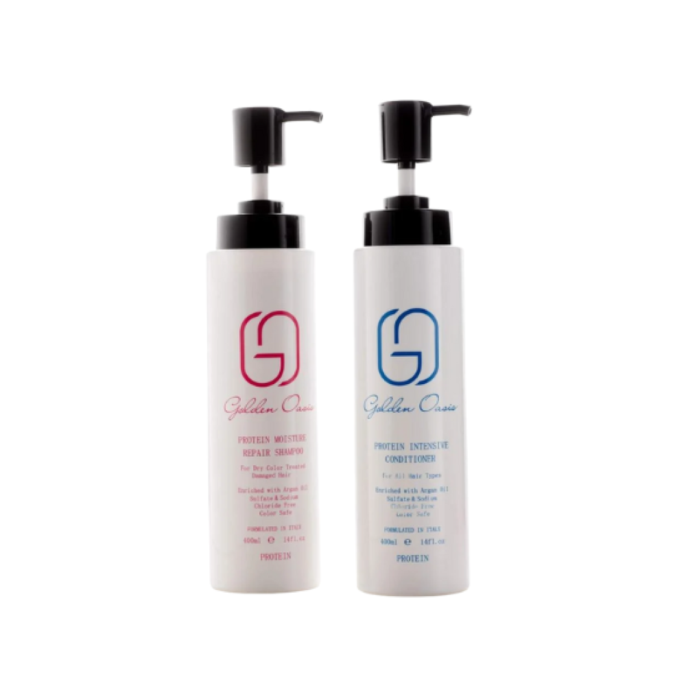 احصلي على عناية متكاملة لشعرك مع شامبو وبلسم جولدن أوسيس المصممين خصيصًا للعناية بالشعر بعد معالجات البروتين والكيراتين. تمتعِ بشعر ناعم وصحي بفضل التركيبة الغنية بالكيراتين والبروتين وزيت الأرجان، بالإضافة إلى مزيج فريد من الزيوت الطبيعية التي تعيد الحيوية للشعر التالف والضعيف. شامبو جولدن أوسيس ينظف الشعر بلطف ويحافظ على نعومته، بينما يوفر بلسم جولدن أوسيس الترطيب اللازم ليبقى شعرك لامعًا ومرنًا. مناسب لجميع أنواع الشعر، وخالٍ من الكبريتات وكلوريد الصوديوم لضمان حماية شعرك من الجفاف والتلف.